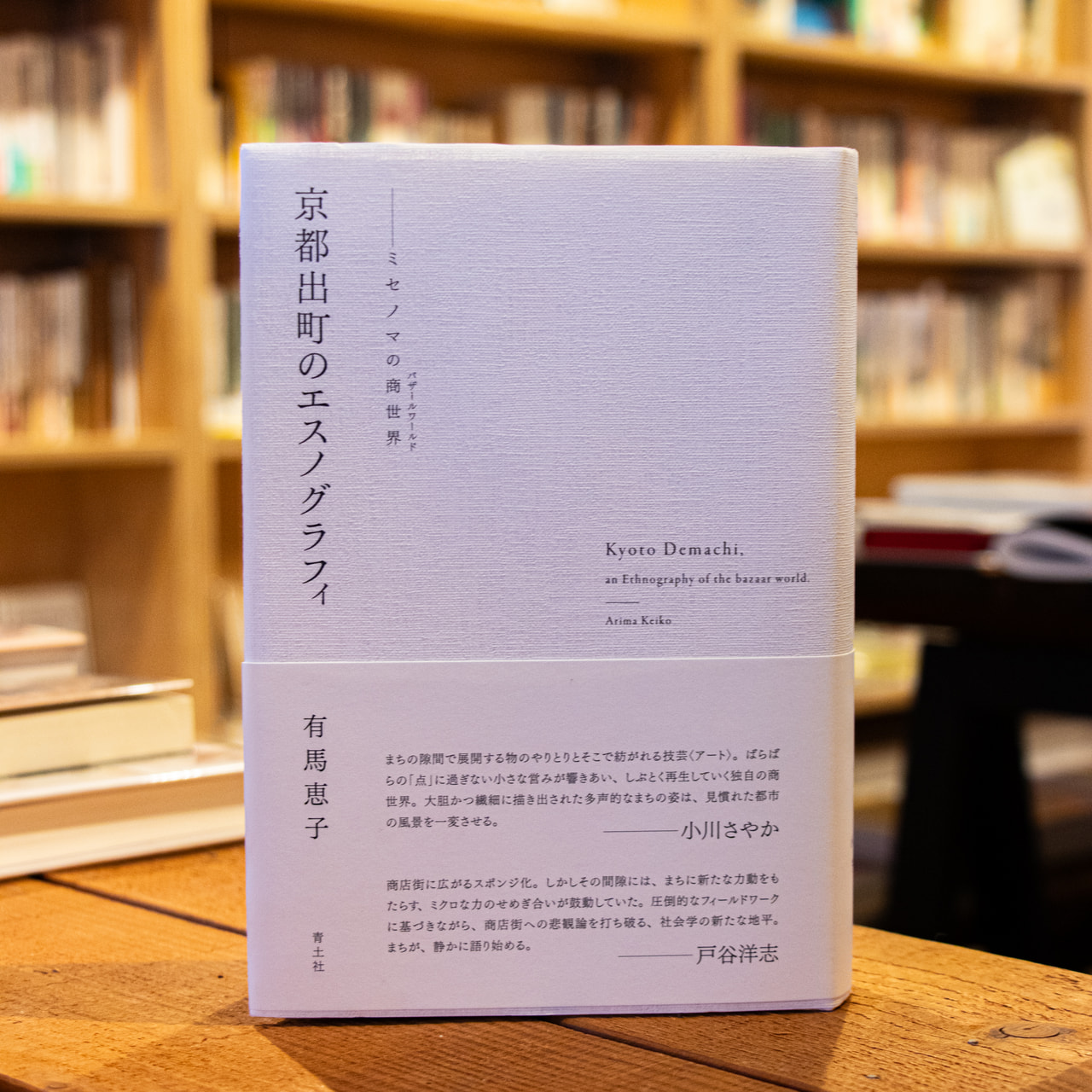 本書は、京都市北部「出町」の乾物店、呉服店、喫茶店、焼きいも屋、路上の八百屋などの個人店のフィールドワークを通じて、店が集積する「商世界」を濃密に描き出しています。