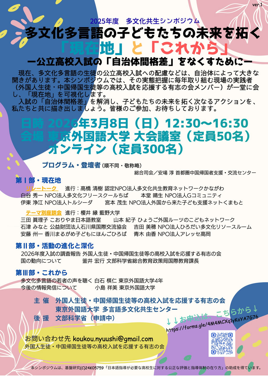 2025年度多文化共生シンポジウム「多文化多言語の子どもたちの未来を拓く「現在地」と「これから」 ー公立高校入試の「自治体間格差」をなくすためにー」
