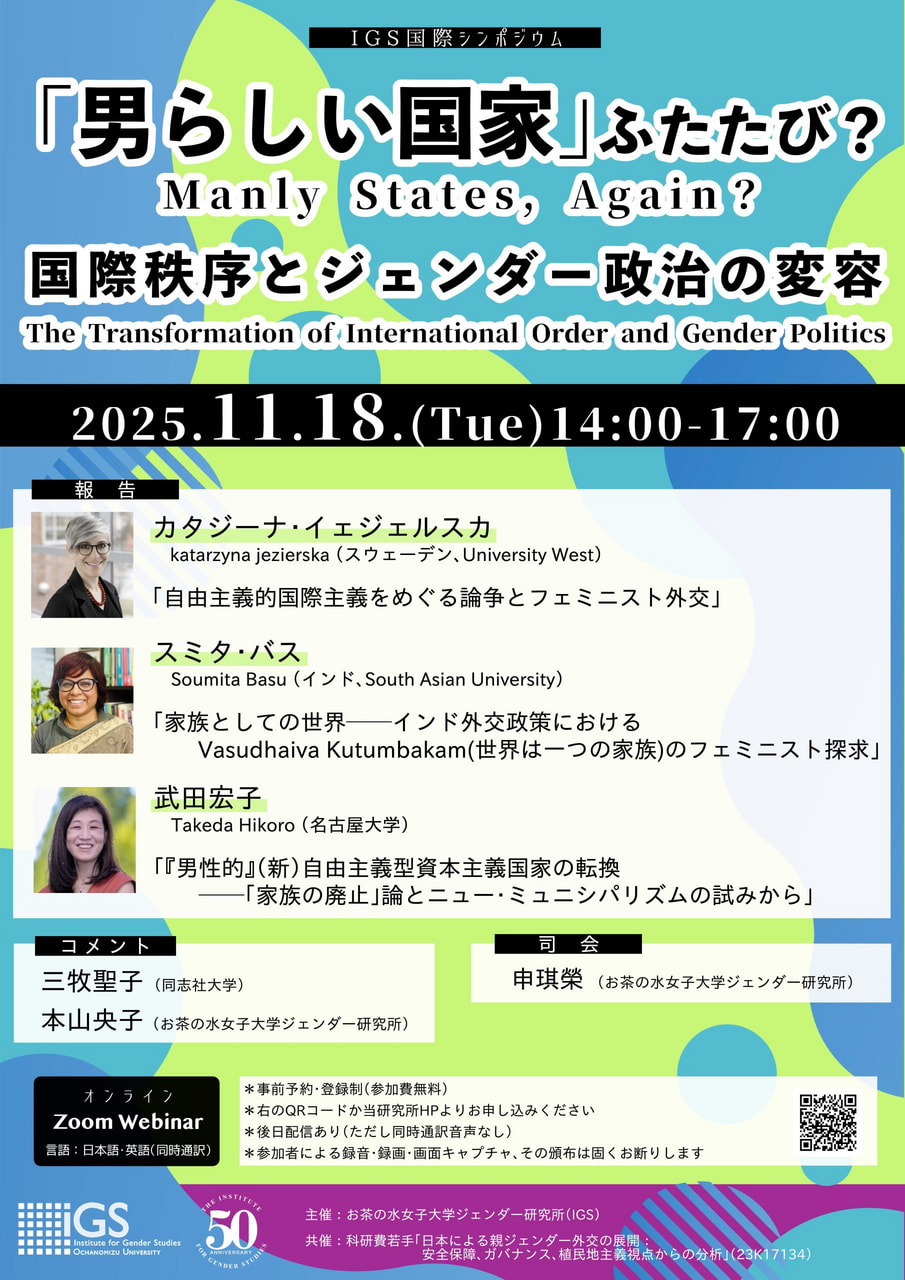 IGS国際シンポジウム「男らしい国家」ふたたび?:国際秩序とジェンダー政治の変容