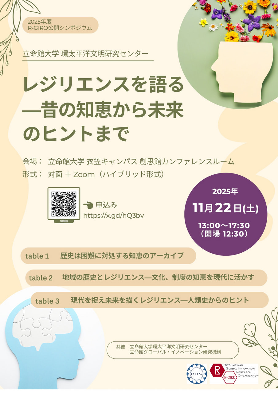 2025年度R-GIRO公開シンポジウム 「レジリエンスを語る―昔の知恵から未来のヒントまで」
