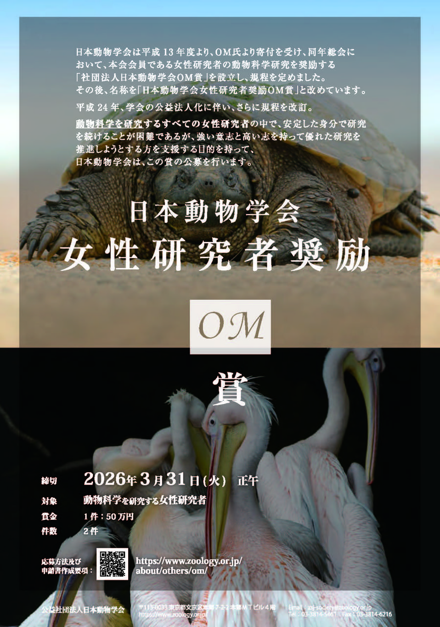 本賞は不安定な身分等の理由により研究を続けることが困難な状況にありながら、強い意志と高い志を持って優れた動物科学分野の研究を推進しようとする女性研究者を支援することを目的としています。
