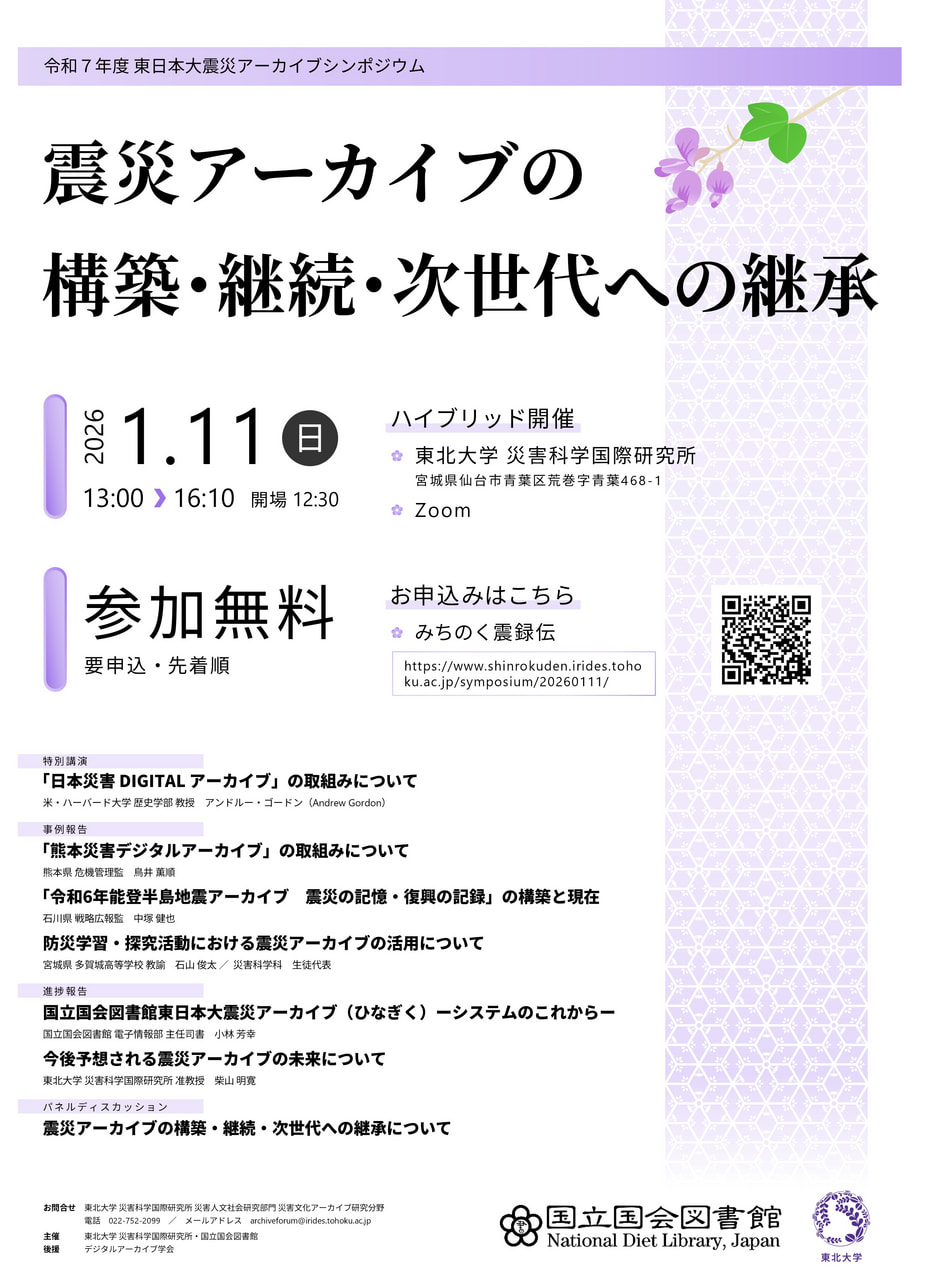 生成AI時代の発展の中で、デジタルアーカイブが次のバージョンアップを果たすための具体的方向性を、保全・公開・権利問題を踏まえつつ専門家と共に探ることを目的とします。
