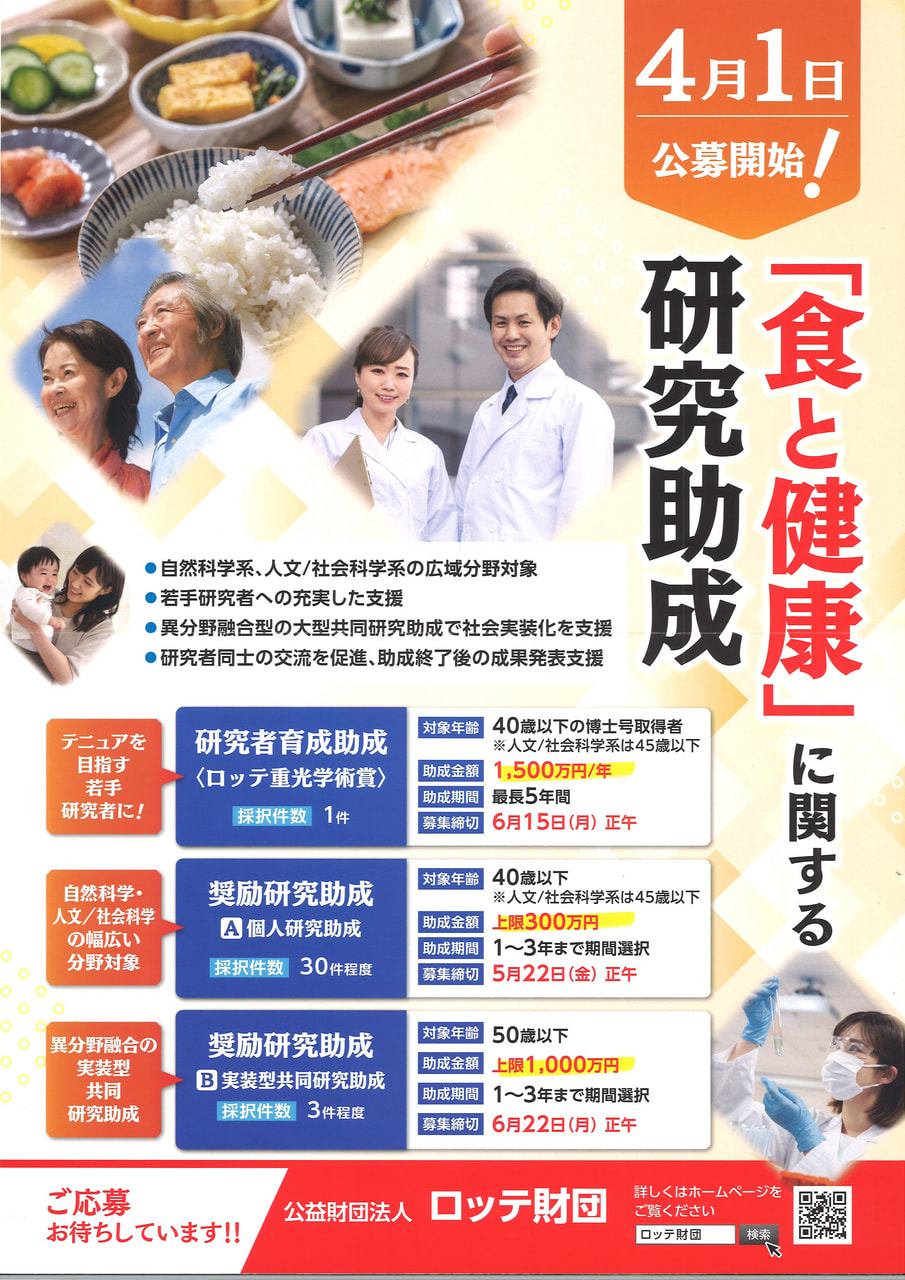 | 関連URL | 公益財団法人ロッテ財団 研究助成事業 https://www.lottefoundation.jp/grant/ |