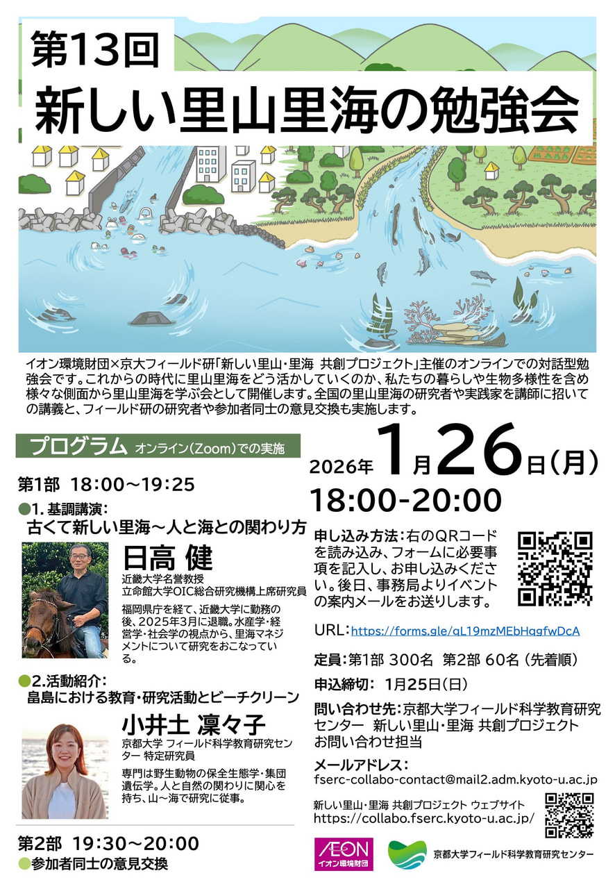 | URL | 新しい里山里海の勉強会(オンライン・第13回) https://fserc.kyoto-u.ac.jp/wp/blog/archives/41479 |