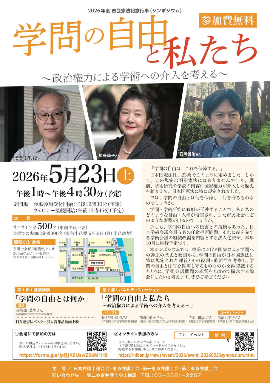 四会憲法記念行事シンポジウム 「学問の自由と私たち ~政治権力による学術への介入を考える~」