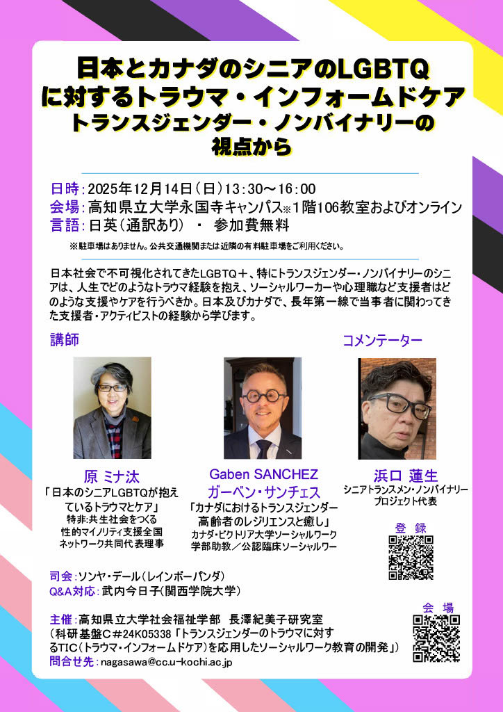 国際シンポジウム「日本とカナダのシニアのLGBTQに対するトラウマ・インフォームドケア:トランスジェンダー・ノンバイナリーの視点から」