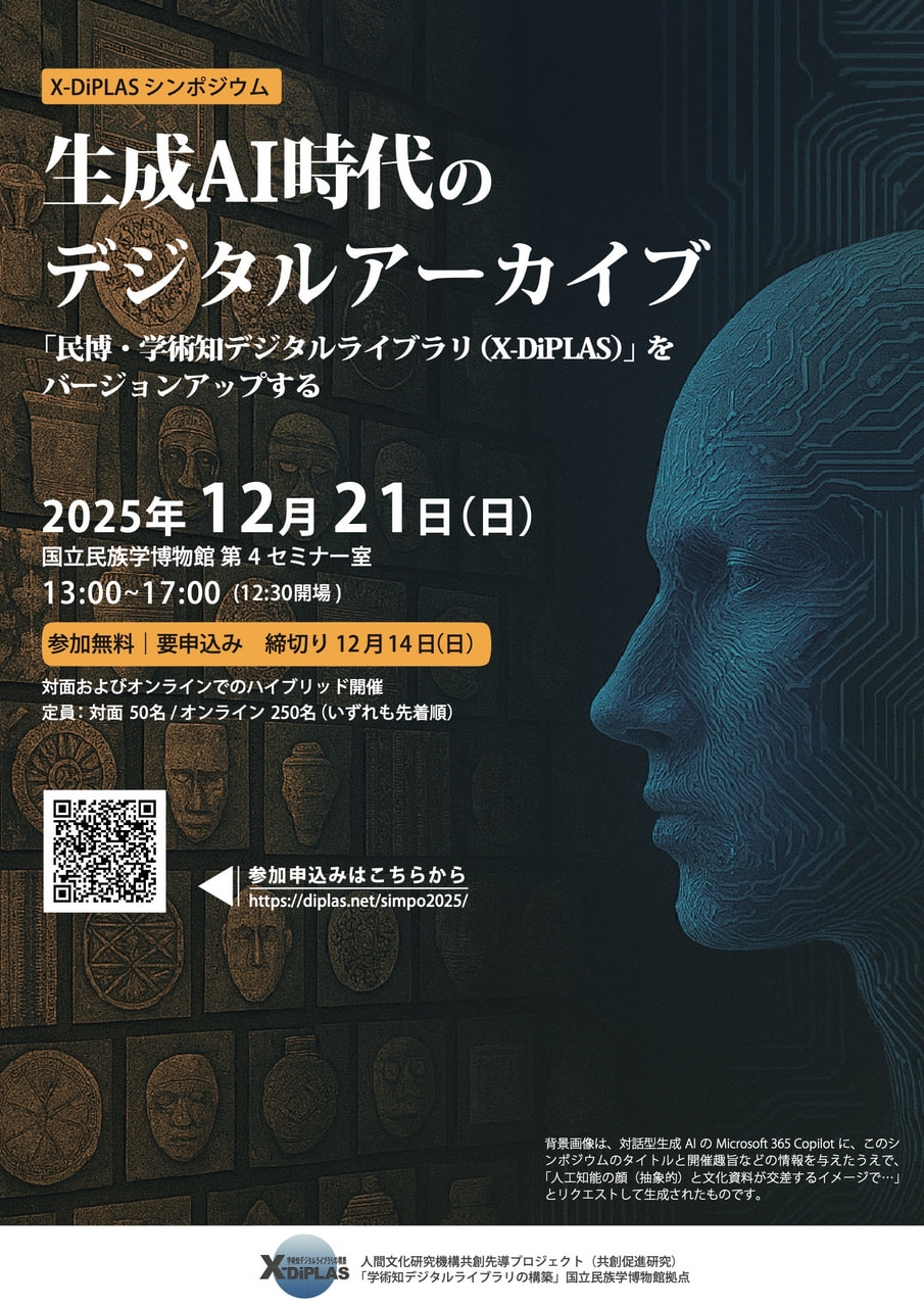 人間文化研究機構共創先導プロジェクト(共創促進研究)「学術知デジタルライブラリの構築」国立民族学博物館拠点 (X-DiPLAS) |