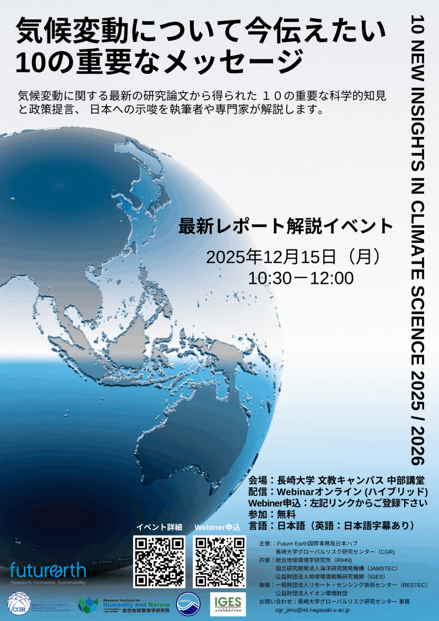 COP30で発表された2025/26年政策報告書及びその内容について国内向けに幅広く紹介することを目的とし、気候変動に関連する最新の研究をまとめた10のメッセージの内容や日本への示唆を分かりやすく説明します。