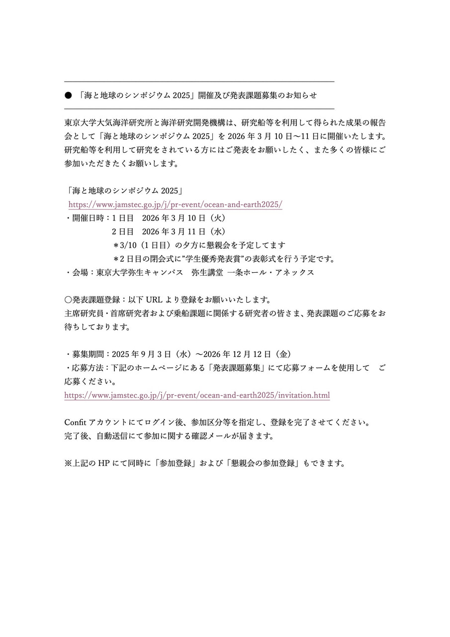 「海と地球のシンポジウム2025」開催決定!皆様の参加登録をお待ちしております。海のサイエンスに興味のある方、ぜひ現地もしくはオンラインでお越しください!